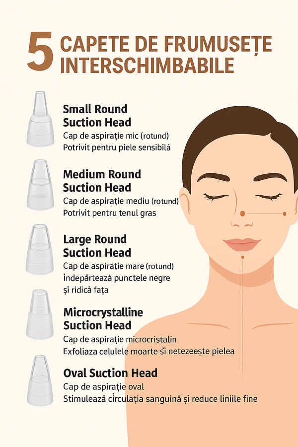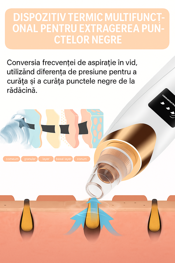Acesta utilizează tehnologia vacuum pentru a extrage impuritățile și punctele negre din pori, fără a irita pielea.